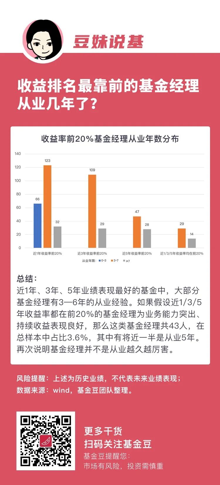 看来看去,我们发现原来基金经理并不是从业越久就越厉害,妥妥算不上是越老越吃香的职业。我们选基金很大程度上就是选人,大家可以多关注那些从业3—6年的经理们,也许穿越牛熊之后可以带来更多的惊喜。