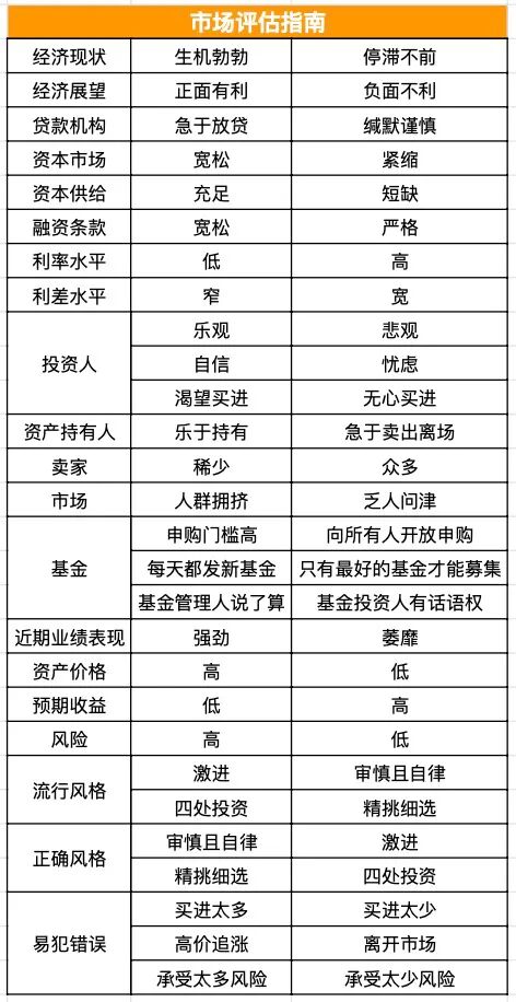比起机构运用的各种量化指标来说,这个“市场评估指南”更侧重于主观感受,是每个人每天设身处地在市场中的体验。