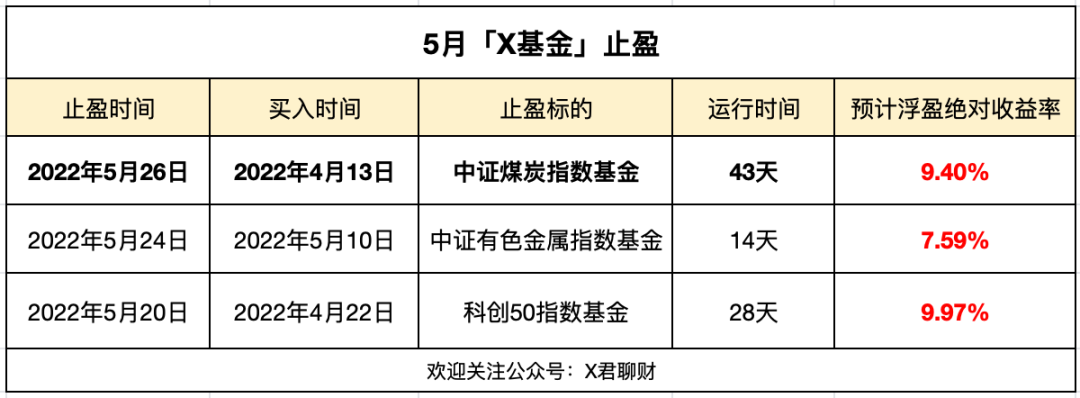 43天收获约9.4%的绝对收益率,「X基金」5月第三次止盈!