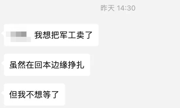 有个朋友,昨天收盘前,跟我说要卖掉军工,因为总是在回本边缘徘徊,不想等了。