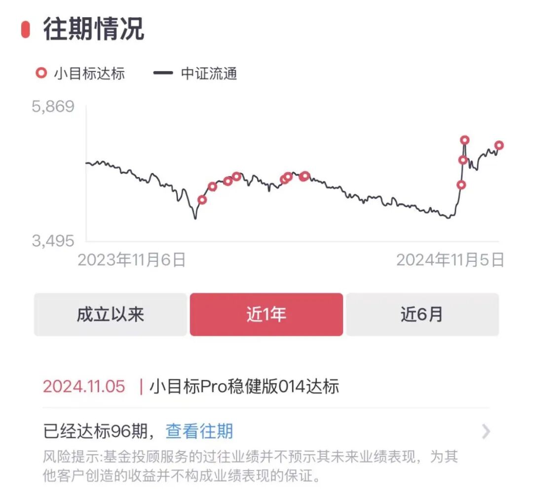 小目标是止盈类基金投顾组合,达到目标收益率后即自动卖出止盈。以今年的行情为例,每当市场有一定的涨幅,小目标会有一波止盈,能一定程度帮助大家解决止盈难题。