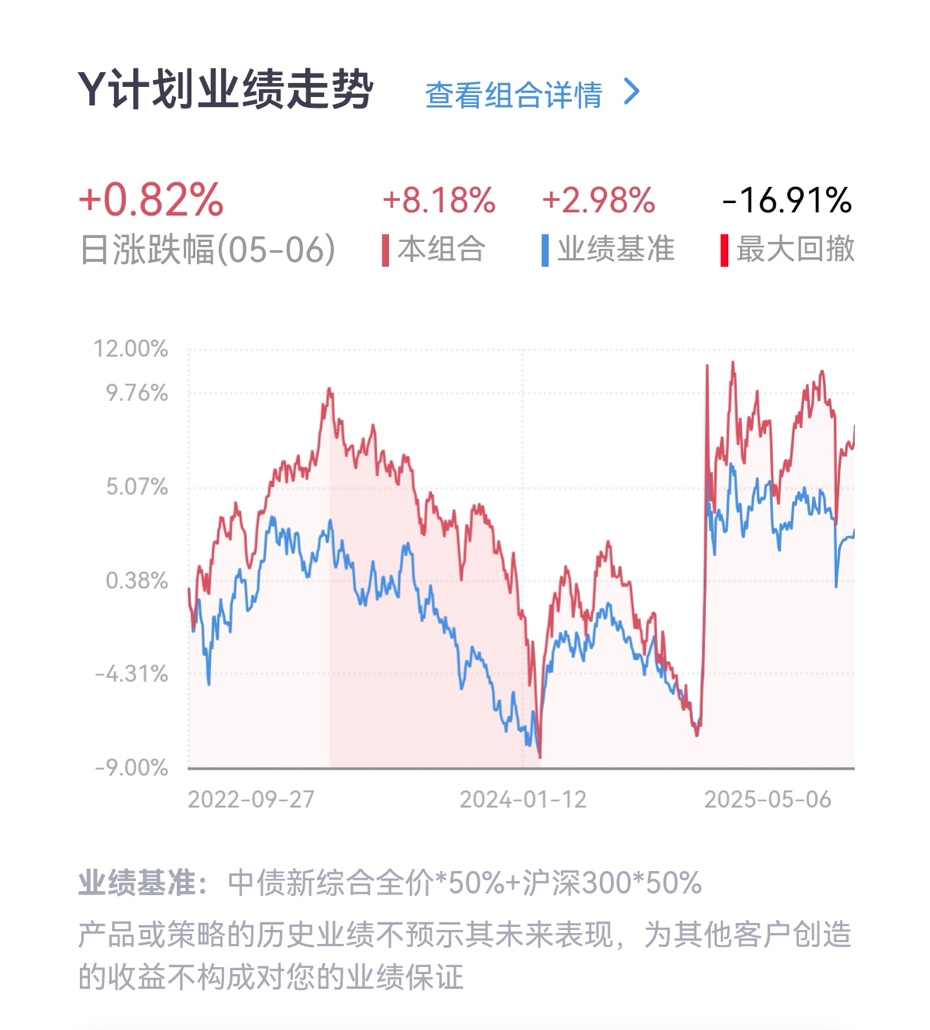 成立至今,Y计划上涨8.18%,业绩基准上涨2.98%,跑赢基准。