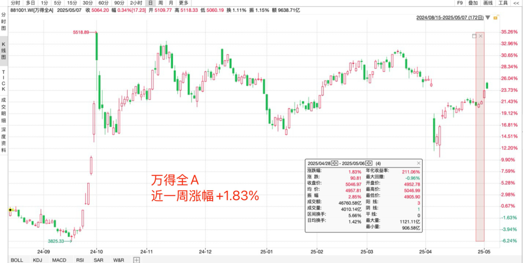 数据来源:万得截图,万得全A,走势为2024.10到2025.5的K线图
