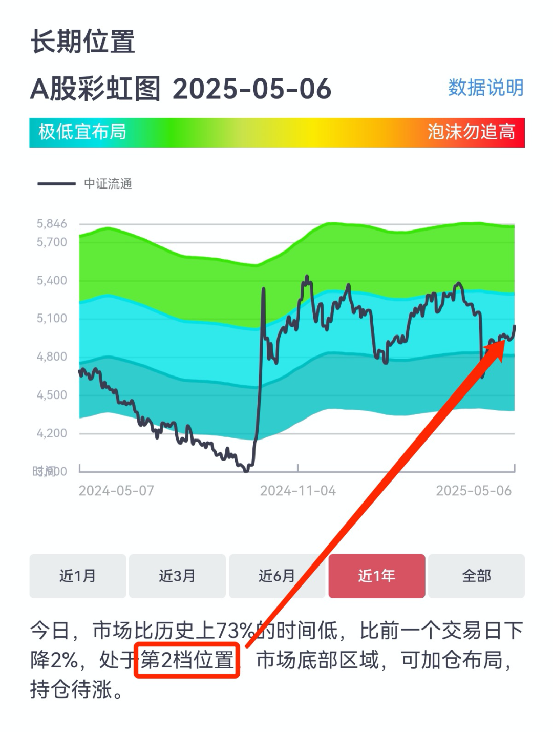 现在彩虹图回到第二档,最近又回调了一点,继续发车积累筹码。