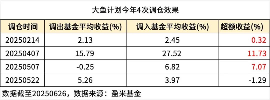 这也得益于主理人的积极管理。在此之前,今年大鱼计划已经有4次调仓,而且阶段来看正向贡献明显。