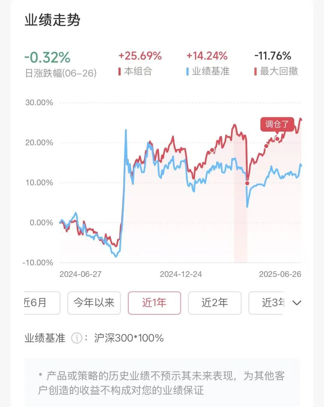 数据来源:盈米基金,时间范围:20240627~20250626。大鱼计划成立于2019年10月24日,截至2025年6月26日,成立以来组合上涨+8.39%,业绩基准(沪深300指数)上涨1.95%。产品或策略的历史业绩不预示其未来表现,为其他客户创造的收益不构成对您的业绩保证。