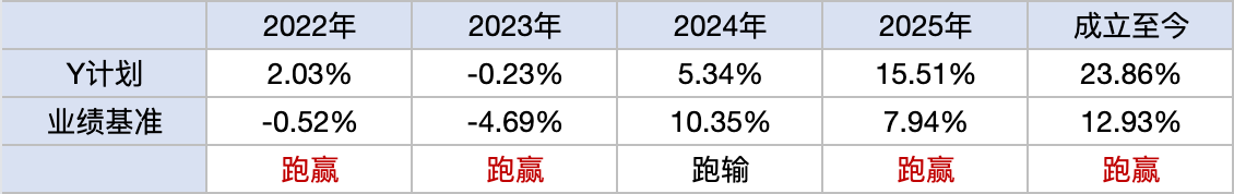 2025年,Y计划上涨15.51%,同期业绩基准上涨7.94%,Y计划跑赢业绩基准7.57%。