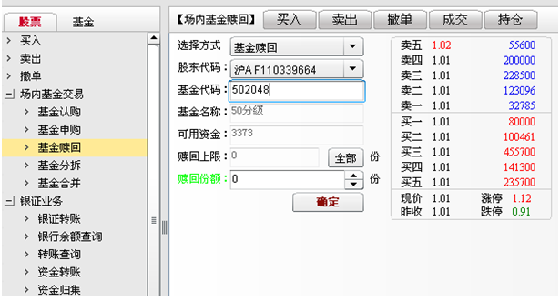 日内单边操作指南那么这种T+0的操作是怎么完成的呢?主要有两种方式:一是买入母基金后如果想卖出可以同日执行分拆操作,然后以子份额形式抛出,或者直接在当日收盘前赎回;二是买入分级B的子份额后如果想要卖出可以买入A份额并申请合并,然后将母基金卖出或赎回。下面,我们将以华宝证券的交易软件为例进行演示。