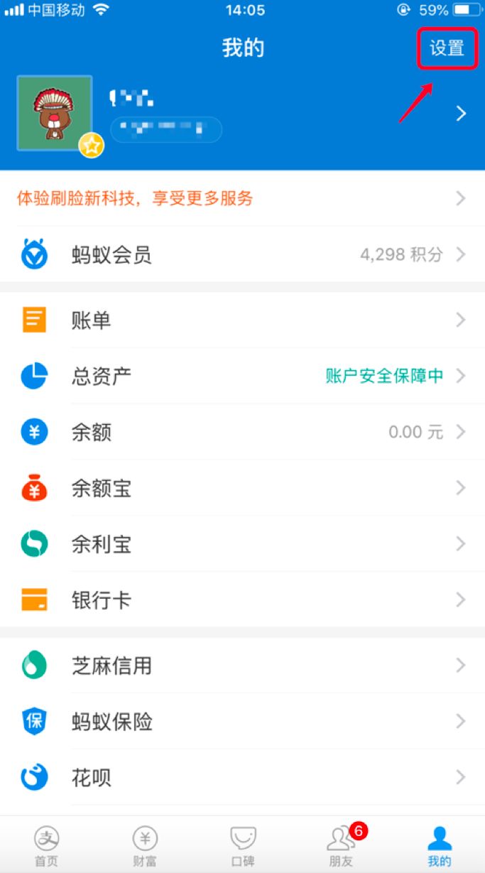 1、打开并进入支付宝【我的】-【设置】页面;