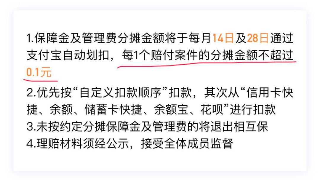 所以说,这款“相互保”也是有保费的,只是保费不确定。每个用户被均摊到的实际金额(即保费)根据每期出险公示的实际情况而定。